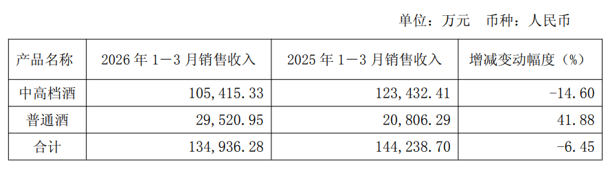 2026年4月15日晚,这家复星系旗下的白酒公司披露一季度财务及经营数据,营收继续下探6.01%;归母净利润下滑33.10%,这已经是连续第三个一季度下滑。