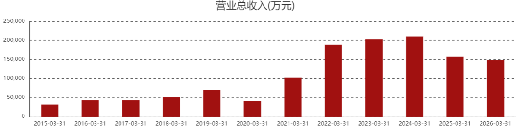 如果将舍得酒业2021年至2026年的一季度营收数据连成线,下行趋势有点令人窒息,太陡峭了。