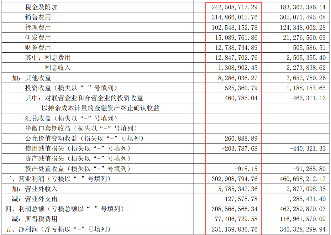 一是税金及附加费用高增。一季度舍得酒业该项支出2.43亿元,较上年同期的1.83亿元增长32.33%。这或许和产品变化、税务清算补缴、隐匿税负集中释放等有关,具体为何财报没明说;